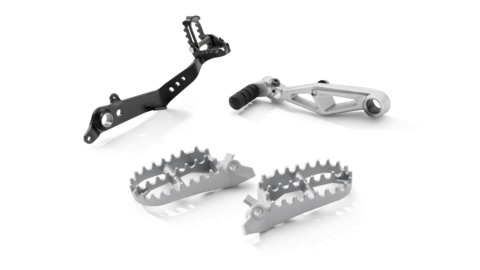 The set, consisting of Enduro footrests, a height-adjustable foot brake lever and a gearshift lever with adjustable kick lever, can be adapted to individual needs. When suitably adjusted, the foot levers can be optimally operated or regulated and allow even better vehicle control especially when riding off-road in a standing position.