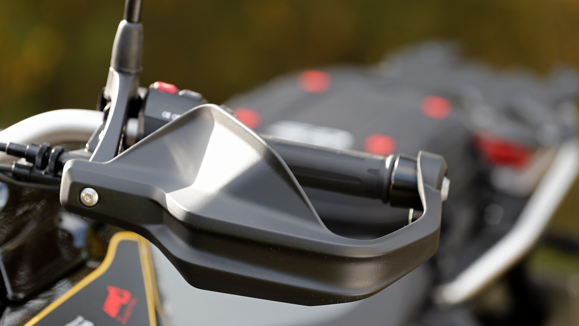 The hand protector, made of impact-resistant and UV-resistant plastic, also protects the operating elements against branches and stone chips while riding off-road, and is aerodynamically tailored to the vehicle. On the road, the wind and weather protection offered by the protectors is also impressive: hands and fingers stay longer dry and warm even at low temperatures.