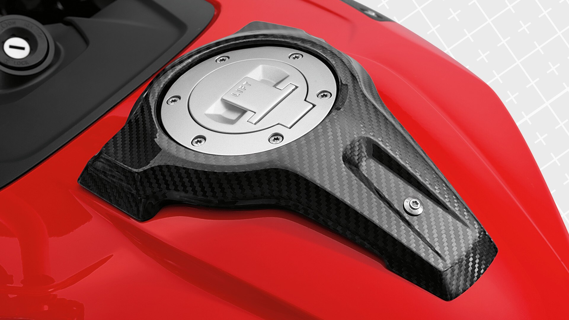 Are you running at your fastest time? Then show it. The HP carbon tank trim with its particularly impact- and UV-resistant high-gloss lacquer sets a clear sign. And the high-power rider footrest system brings maximum functionality. Rigid footrest like those in racing sport: for increased comfort and safety. The high-power titanium exhaust system with its tapered end cap made of carbon ensures an even more intense racing feeling and a weight saving of 5.7 kg compared to standard production models. The best way to record the results is with the high-power data logger on the racing track. You can store and evaluate your ride from speed right up to heel angle on 32 data channels.